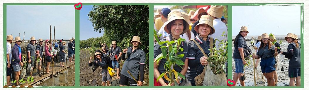 บริษัทฯ ได้เข้าร่วมกิจกรรมปลูกป่าชายเลนร่วมกับโตโยต้าเป็นปีที่ 2 เพื่อมุ่งสู่เป้าหมายสร้างความเป็นกลางทางคาร์บอน (Carbon Neutrality) อีกทั้งยังช่วยฟื้นฟูระบบนิเวศ เพิ่มความหลากหลายทางชีวภาพ เป็นแหล่งอนุบาลสัตว์น้ำ และสิ่งที่สำคัญคือช่วยดูดซับคาร์บอนไดออกไซด์ ลดฝุ่นละออง ลดโลกร้อน เพิ่มอากาศบริสุทธิ์ เรารู้สึกภูมิใจที่ได้เป็นส่วนเล็กๆ ในกิจกรรมที่ช่วยปกป้องสิ่งแวดล้อมและสร้างอนาคตที่ยั่งยืน ทั้งนี้บริษัทฯ ต้องขอขอบคุณเพื่อนพนักงานทุกท่านที่ได้ให้การสนับสนุน และให้ความร่วมมือในการดำเนินกิจกรรมต่างๆ ด้วยดีเสมอมา